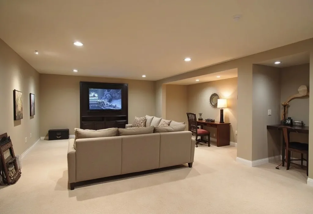 Basements tend to lack natural light, so your lighting plan should be intentional. Bright overhead lighting is key, but you also want to avoid glare on your TV or entertainment space. Dimmable switches can offer both function and ambiance. Be sure to plan your layout around how the space will be used: think of flow, furniture placement, and creating distinct zones for relaxing, working, or playing.
